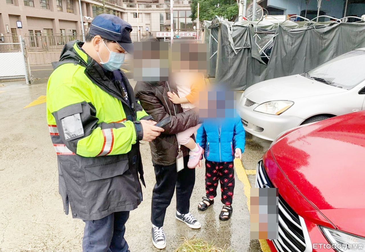 ▲桃園市吳姓婦人昨天上午準備出門時,卻誤將三歲女兒放在後座兒童安全椅上,欲將兒子送上車時,轎車卻突然上鎖,急得向巡邏警方求助。(圖/記者沈繼昌翻攝)