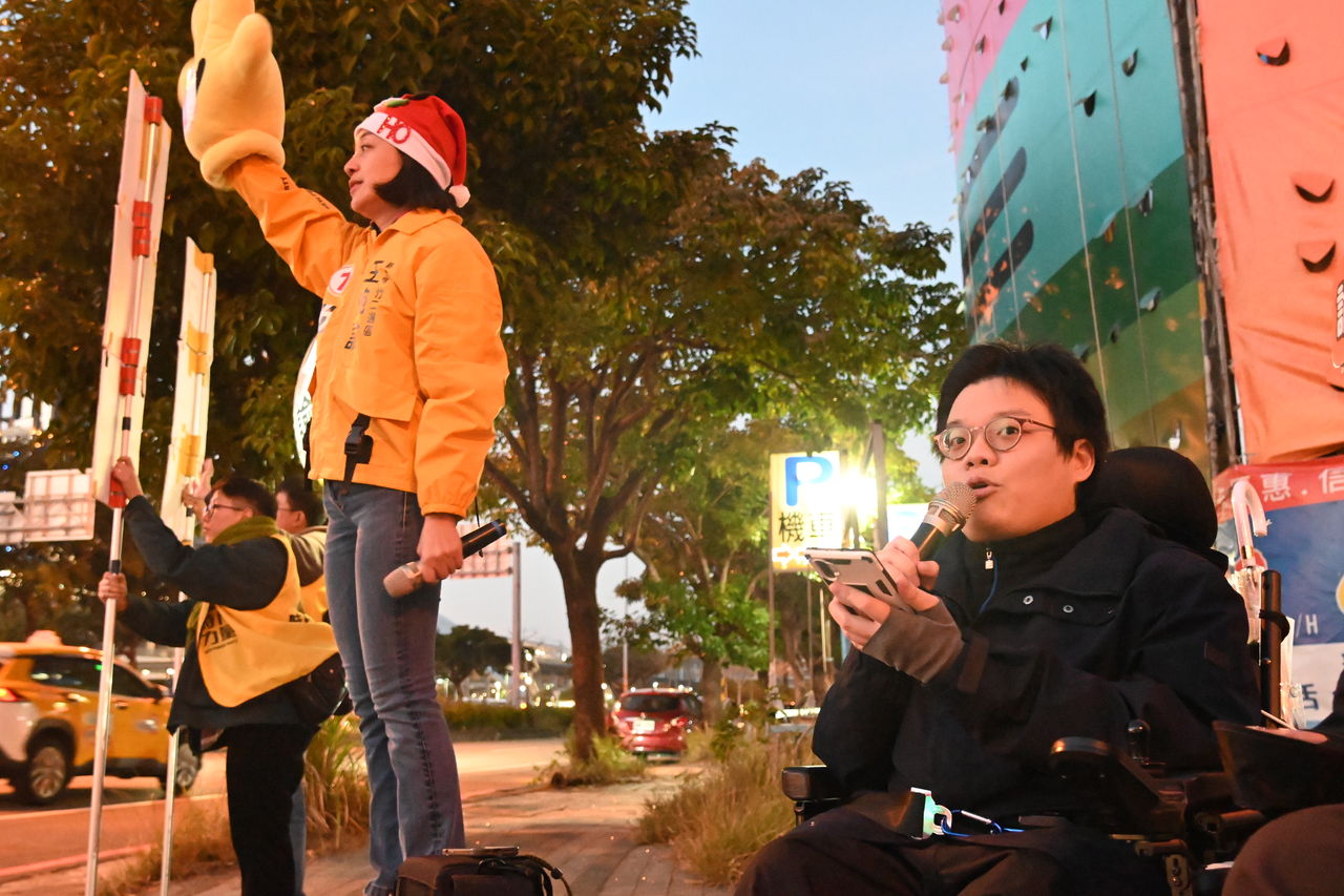 時代力量新竹縣第二選區立法委員參選人王婉諭持續發起「百工百業挺婉諭」計畫,在聖誕節當日,台灣障礙者權益促進會(障權會)副理事長劉家承及理事許家榮(Simon)專程到新竹,除獻出第一次街頭助講並陪同王婉諭站路口外,更一一細數過去四年王婉諭在身心障礙者權益議題上的努力,並於臉書撰文誠摯懇請新竹縣的選民為國會留下一席「保育系」的立法委員,繼續為人民發聲。