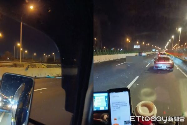 ▲國一北上230.9K處發生嚴重車禍,一人噴飛倒在地上。(圖/記者蔡佩旻翻攝)