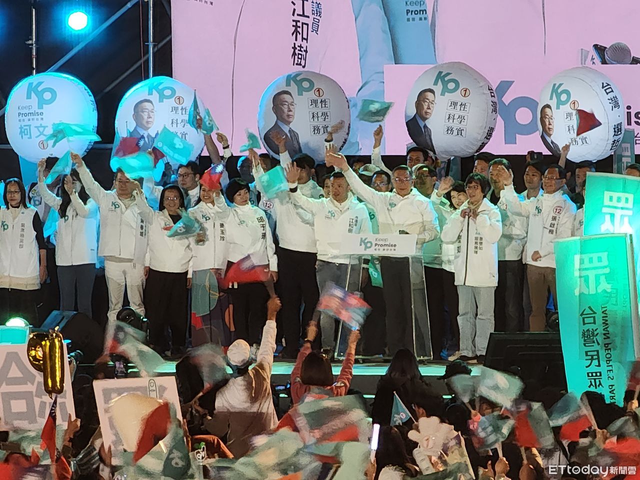 而柯文哲在晚間9點20分左右開始大進場,受到支持者夾道歡迎,短短百餘公尺走了11分半才上台。主辦單位民眾黨表示,現場民眾湧入五萬人,柯文哲單一頻道直播同時在線超過9.1萬,也創下新高。
