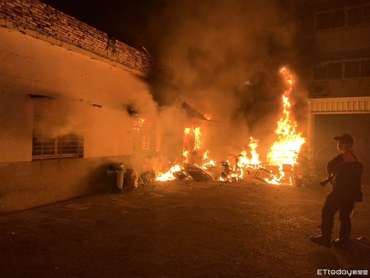 ▲高雄岡山平房燃燒電動機車。(圖/記者許宥孺翻攝)