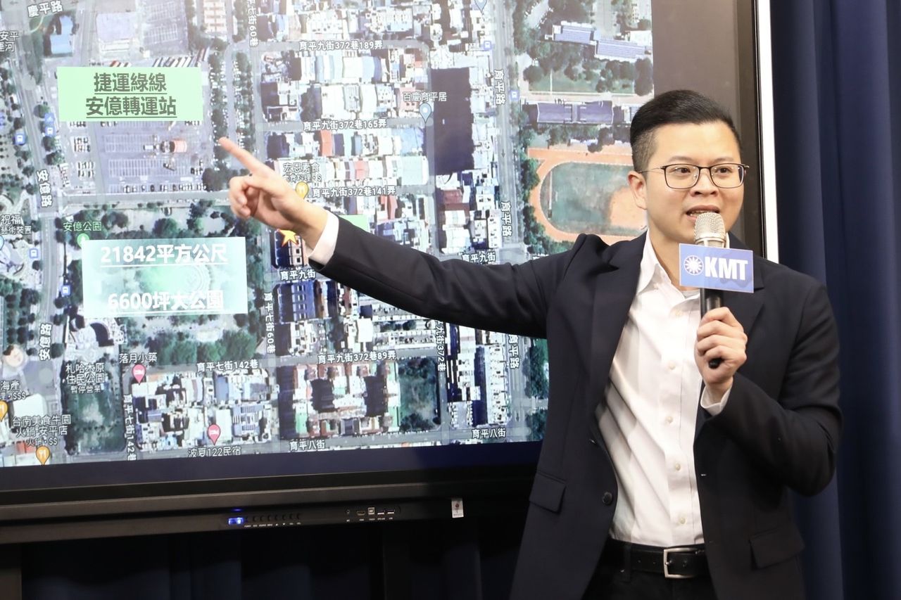 ▲凌濤指控,台南綠線捷運路線核定調整5次,僅有鄰近賴宅的安億轉運站不動如山,強調這可能就是賴清德選戰最後的破口。(圖/國民黨提供)