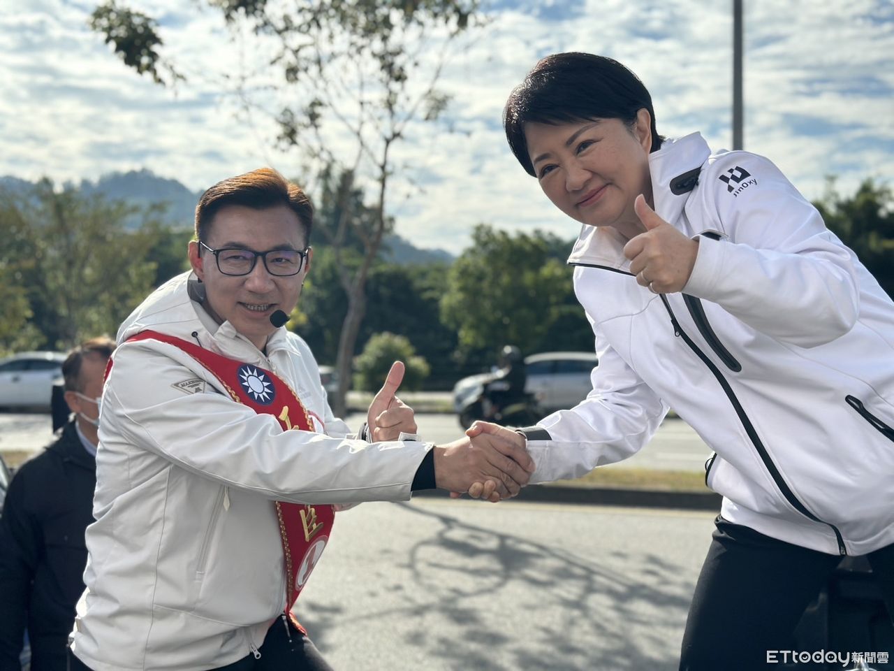 ▲選前黃金周!「超級母雞」盧秀燕化身催票機,前往山城輔選江啟臣,車掃豐原。(圖/記者許權毅攝)