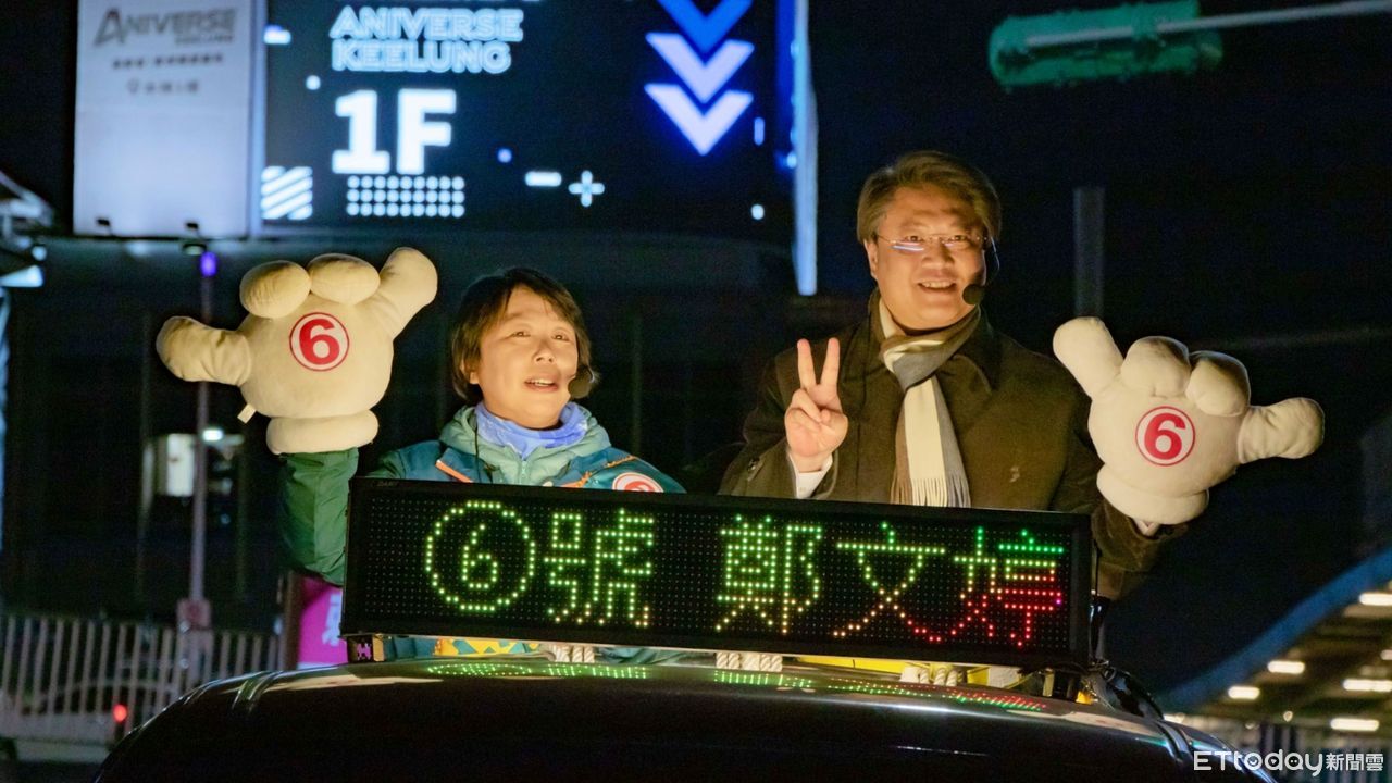 ▲全力衝刺基隆車隊掃街,內政部長林右昌(右)率隊助陣鄭文婷(左)。(圖/記者郭世賢翻攝,下同)