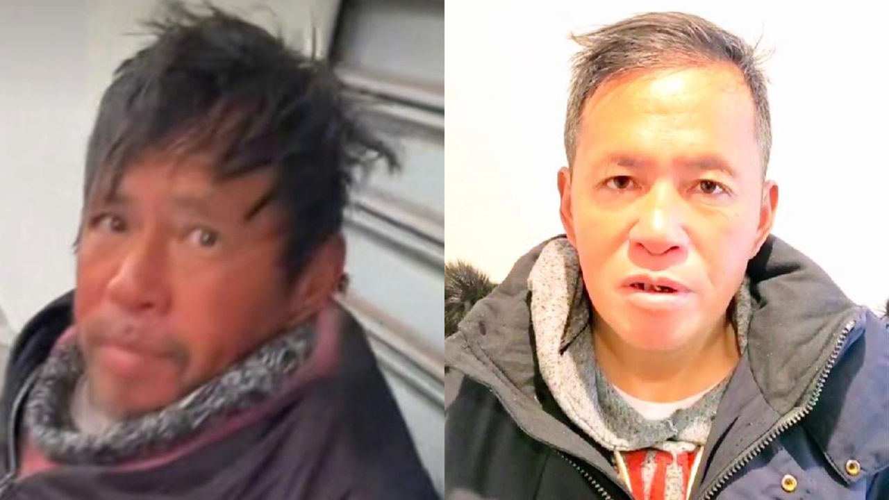 ▲留美博士被發現在街頭流浪(左)如今剪短頭髮換上新衣(右)。(圖/翻攝自極目新聞、微博)