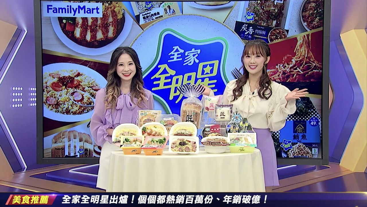 ▲女神主播在《ET午間新聞》開箱全家熱銷百萬份的「全家全明星商品」。(圖/截取自ET午間新聞,下同)