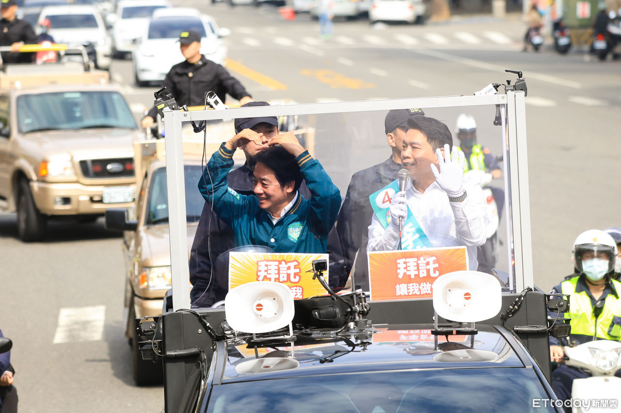 民進黨8日展開全國大車掃,正副總統候選人賴清德與蕭美琴南北兵分二路,力拚各地立委選情。賴清德中午特別到高雄市左營楠梓區跟立委候選人李柏毅車掃,李柏毅特別準備了全糖珍珠奶茶給賴清德,賴清德看到後相當開心,還特別在車上高舉奶茶杯,面對夾道歡迎的鄉親,賴清德甚至也手比「韓式愛心」,回應支持者的熱情。賴清德強調,左營楠梓是最激戰的選區,拜託所有高雄鄉親禮拜六走出家門,用選票守住高雄最關鍵的一席。