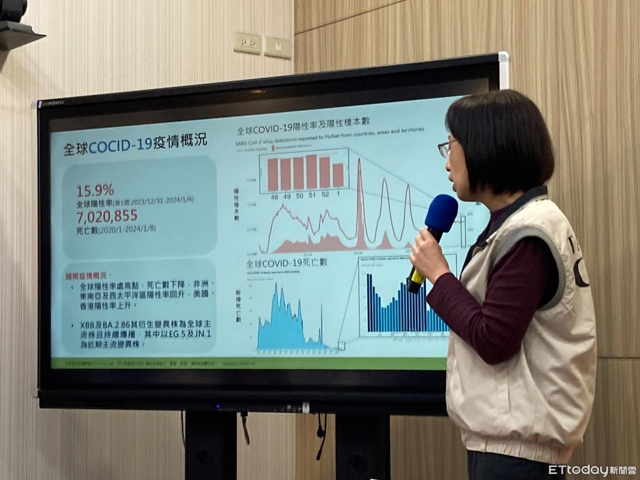 ▲疾管署疫情周報,疫情中心副主任李佳琳說明新冠肺炎疫情。(圖/記者洪巧藍攝)