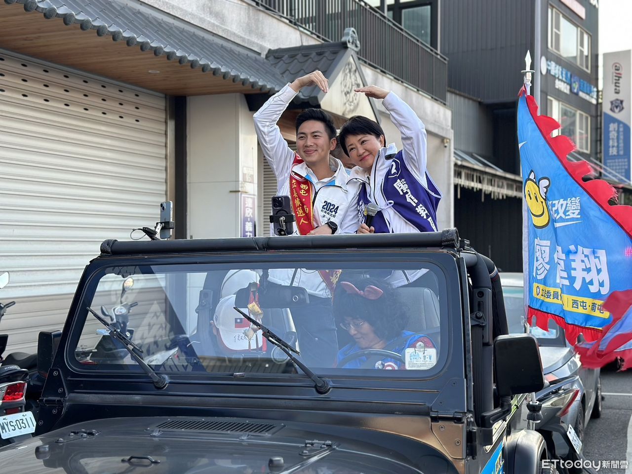 ▲盧秀燕今下午陪同廖偉翔掃街拜票。(圖/記者白珈陽攝)