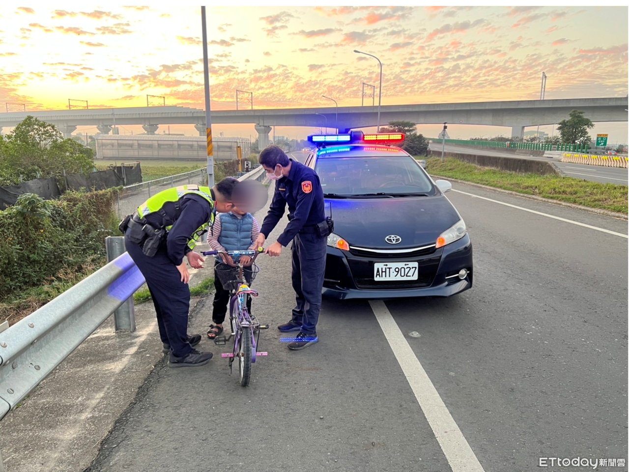 據了解,男童於褒忠住家趁家人不注意時,騎乘自行車外出,幸虧有熱心民眾報案與警方共同將男童攔下,結束這場驚心動魄的快速道路迷途記。虎尾警分局呼籲民眾家中若有孩童應特別注意其動向,更要避免單獨在家,若有急迫事件應找人代為照顧,避免發生意外及憾事。