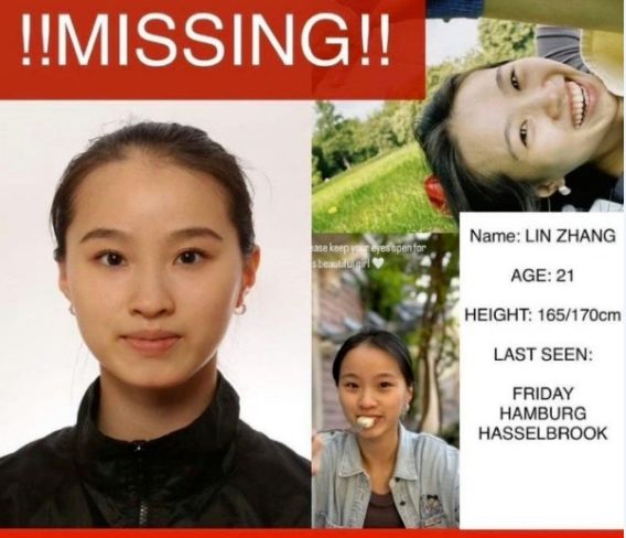 德國著名舞團漢堡芭蕾舞團一名舞者發布尋人消息稱,舞團內同事、21歲的中國舞者張琳,目前已失蹤近5天。最後一次見到張琳是在當地時間1月5日13點30分左右,在漢堡的hasselbrook車站附近。有網友稱其疑似被綁架,家屬收到了勒索影片。一名同事稱關於此事無人清楚,應是謠言。