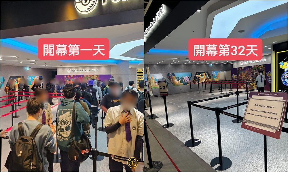 台北寶可夢中心(Pokémon Center TAIPEI)開幕時,因限量發放開幕紀念特典卡「台北的皮卡丘」,狂吸粉絲連夜排隊。就有網友在「爆廢1公社」貼文「台北寶可夢門口人潮變……」,PO出開幕第1天VS第32天的對比圖。
