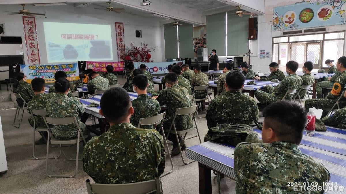 詐騙案件層出不窮,為了加強全民反詐意識,潮州警分局於日前受邀前往轄區陸軍第四地區運輸兵群東岸營區,向國軍弟兄們實施「防詐騙、交通安全及婦幼保護」宣導,藉此讓國軍弟兄們瞭解最新的詐騙手法;也透過新修正的交通法令及行人路權規定,讓營區官兵們瞭解人本路權、防禦駕駛的觀念。