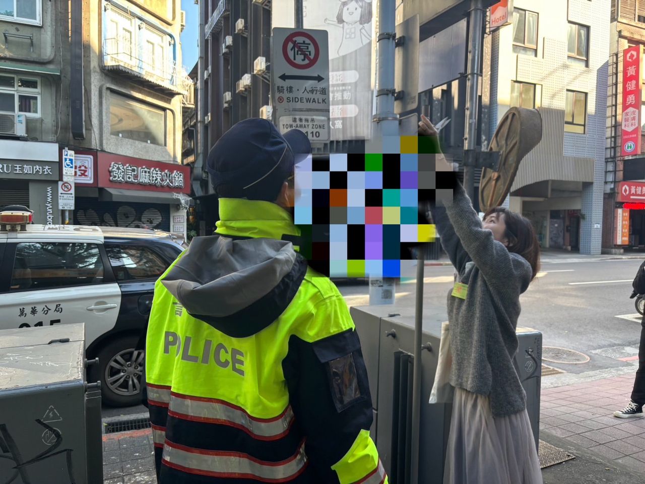 ▲國民黨立委候選人鍾小平的布條掛在投開票所門口,警方陪同選務人員到場狂拆。(圖/記者袁茵翻攝)