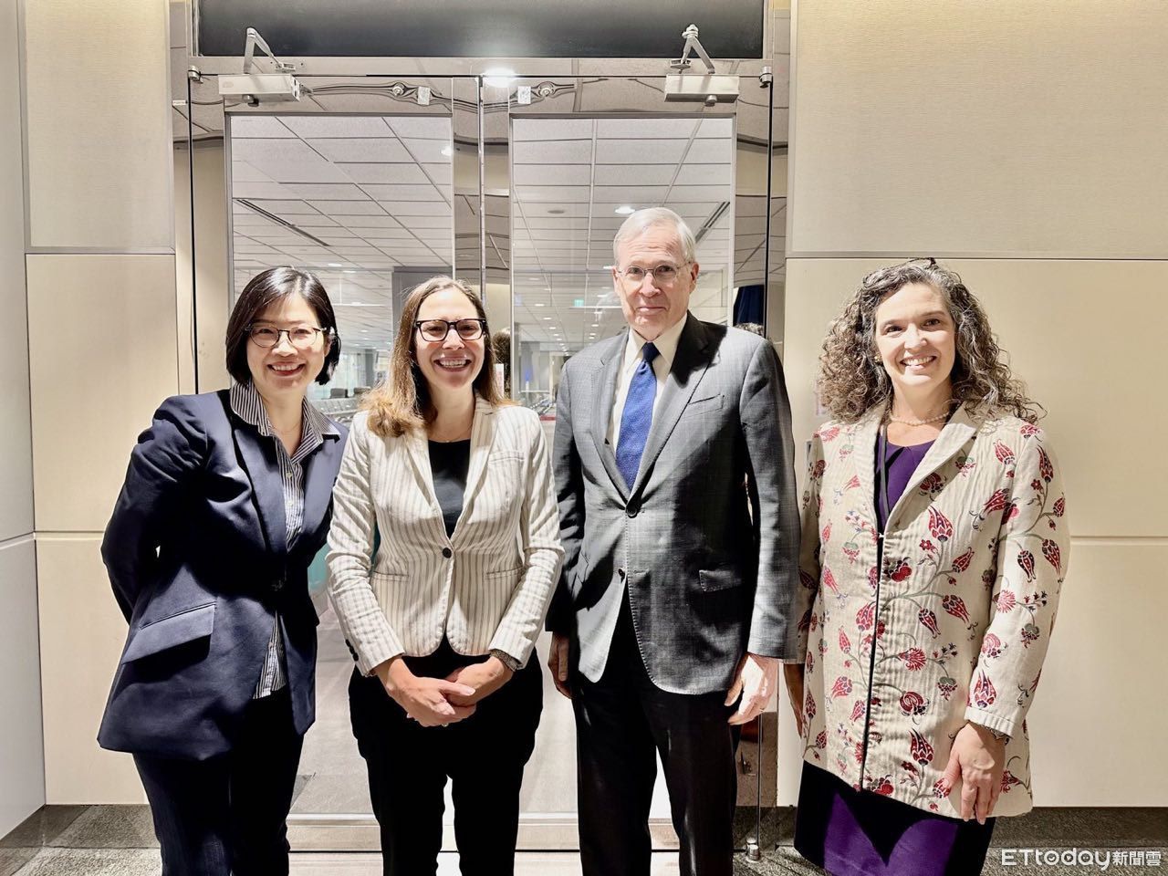 ▲外交部北美司司長王良玉(左一)代表外交部在機場歡迎海德利(右二)、羅森柏格(左二)訪台。孫曉雅(右一)也前往迎接。(圖/外交部)