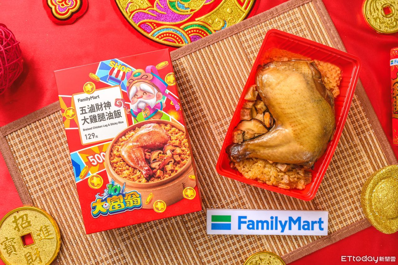 全家新春限定「4款開運鮮食」來了,首推去年於LINE群組團購熱銷超過14000份的「五滷財神大雞腿油飯(129元)」,裡頭吃得到一整隻特選秘滷大雞腿搭配古法炊煮油飯,每一口都超滿足,且今年團購還加碼送「大甲鎮瀾宮祈福卡」,快來+1;加碼吃選用4支台式烤香腸作為主角的「腸腸有鐵支便當(99元)」,有著吃完鐵支,必定鐵支寓意,也是年年必吃開運夯品之一。