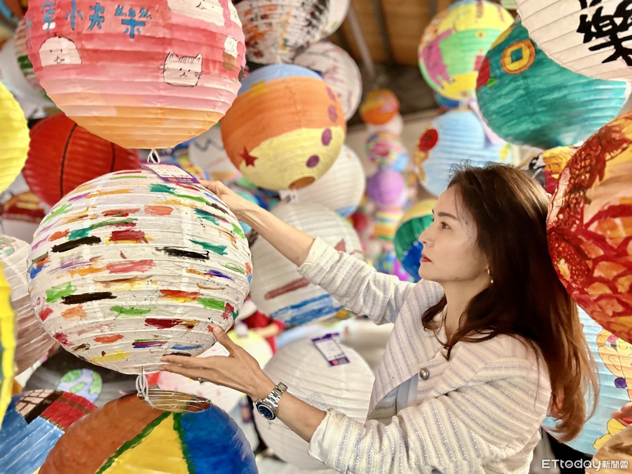 ▲西螺福興宮每年春節前都邀請學童彩繪燈籠並設立評選機制,今年特地邀請多位藝術界名師進行審評。(圖/記者蔡佩旻攝)