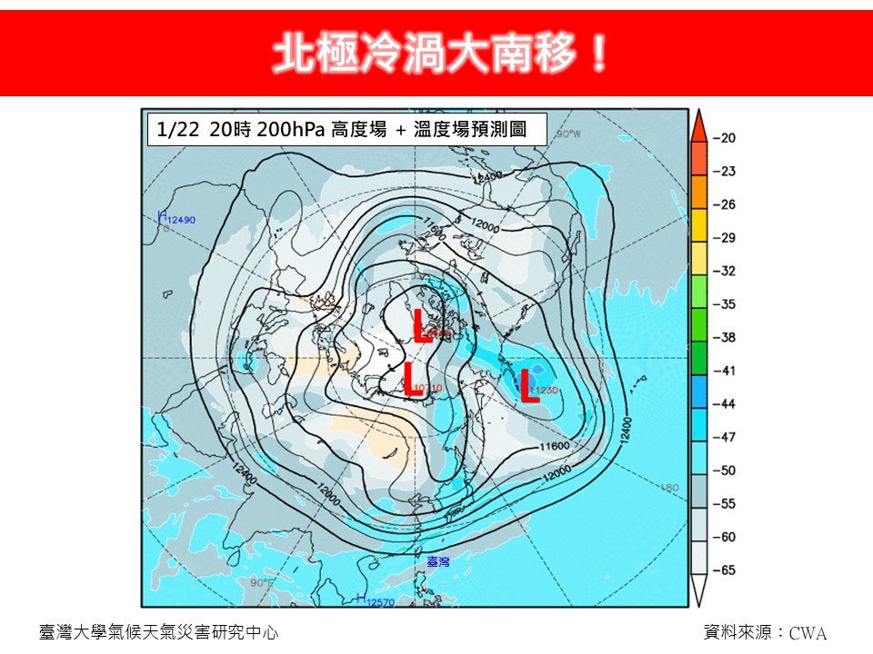 ▲ 北極冷渦大南移。(圖/翻攝「林老師氣象站」臉書)