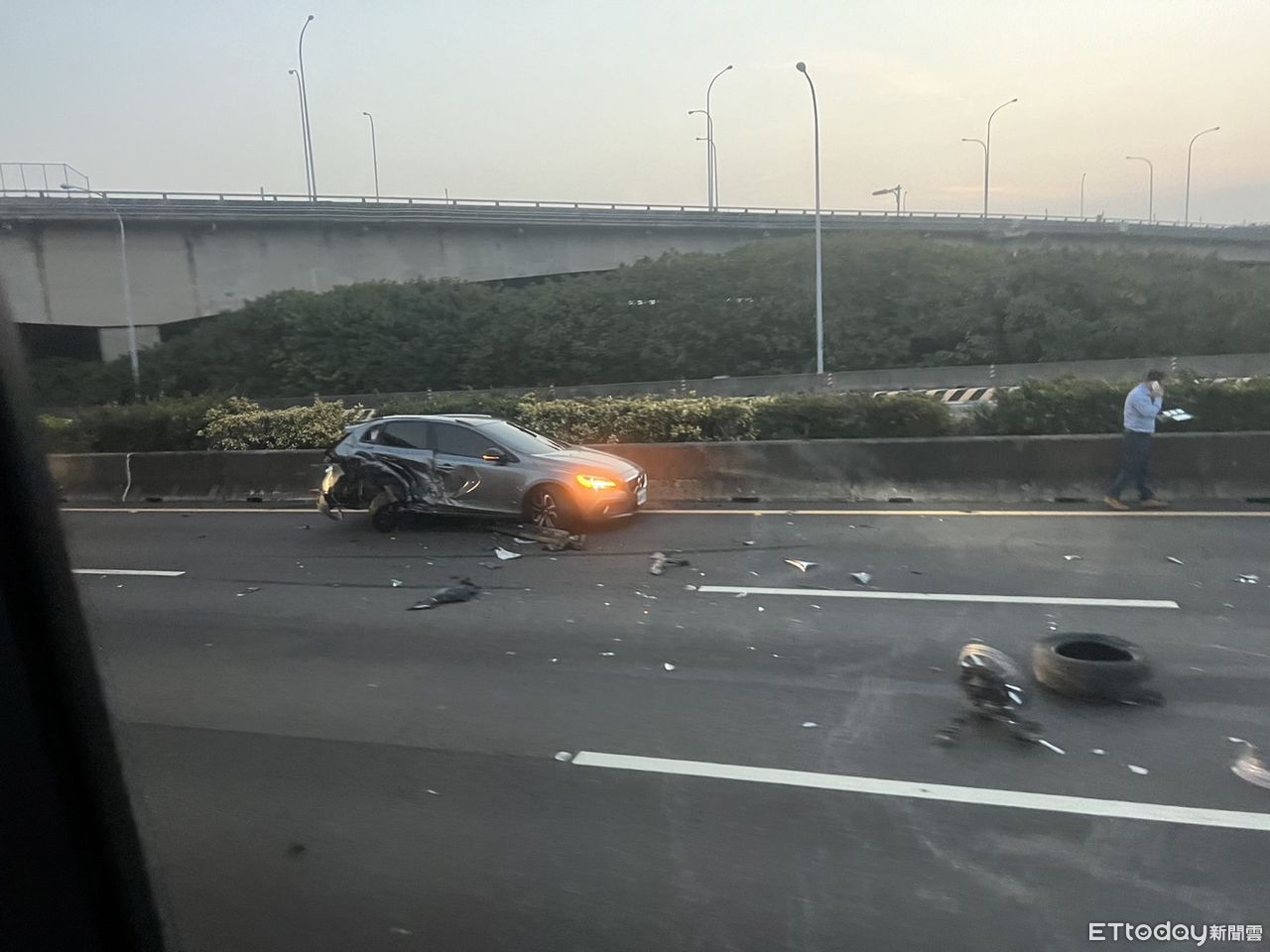 ▲路面上到處都是散落的車體零件。(圖/翻攝自彰化踢爆網,下同。)