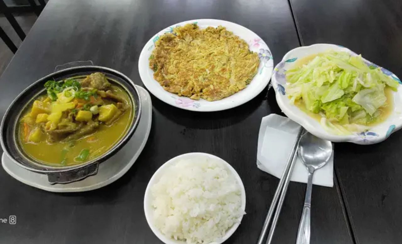 他也說,當天點的份量剛剛好,如果點2道會太單調,4樣則太撐,因此總共點了3道菜,包括一道煎蛋、一份炒高麗菜,還有咖哩牛肉煲,吃得相當滿足。