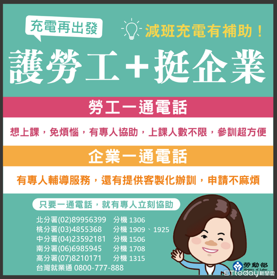 ▲▼ 勞動部護勞工、挺企業 「充電再出發」補助度景氣低迷 。(圖/勞動力發展署雲嘉南分署提供)