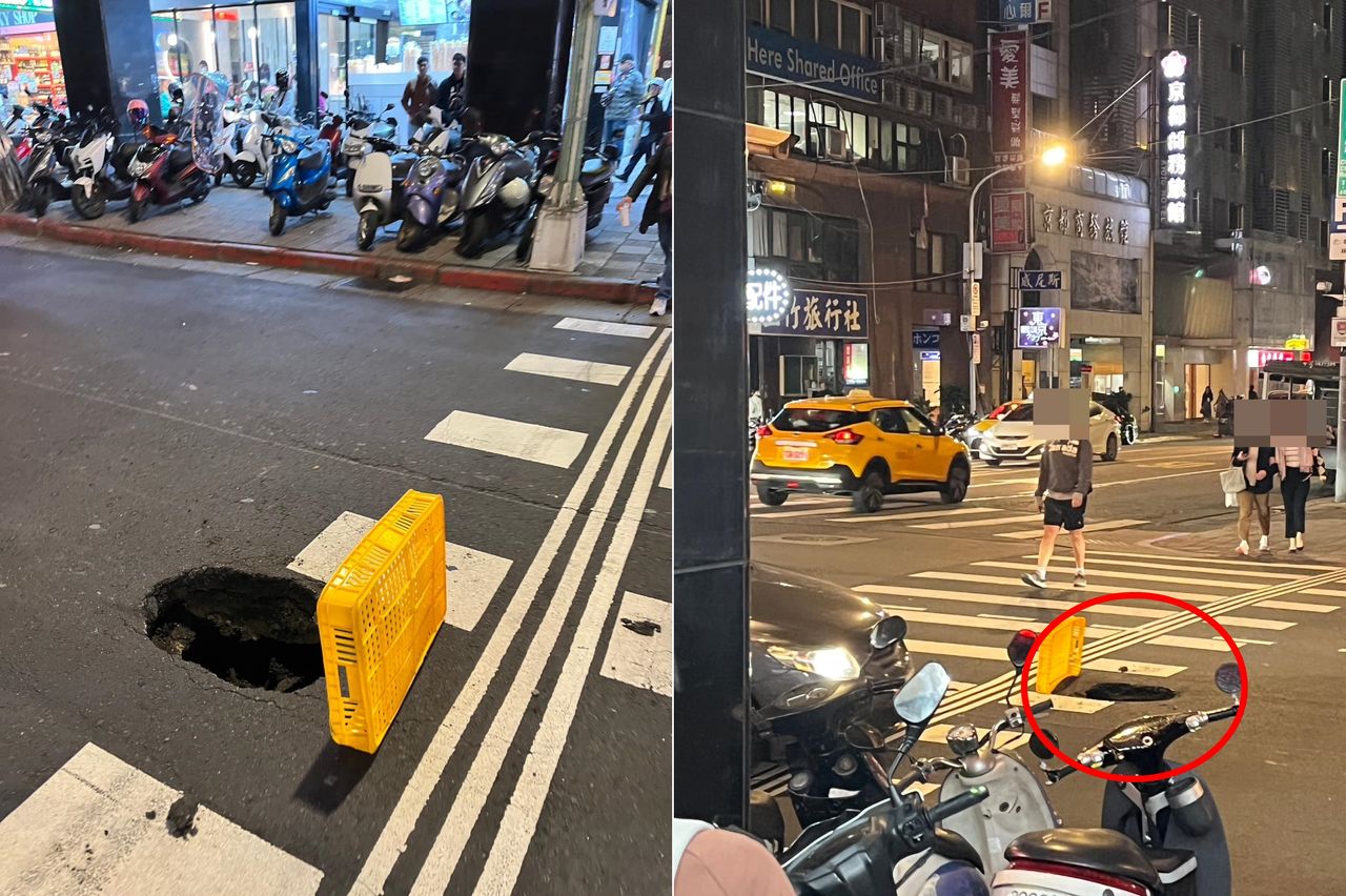 ▲北市林森北路路口驚現天坑。(圖/翻攝自Facebook/林森北消息)