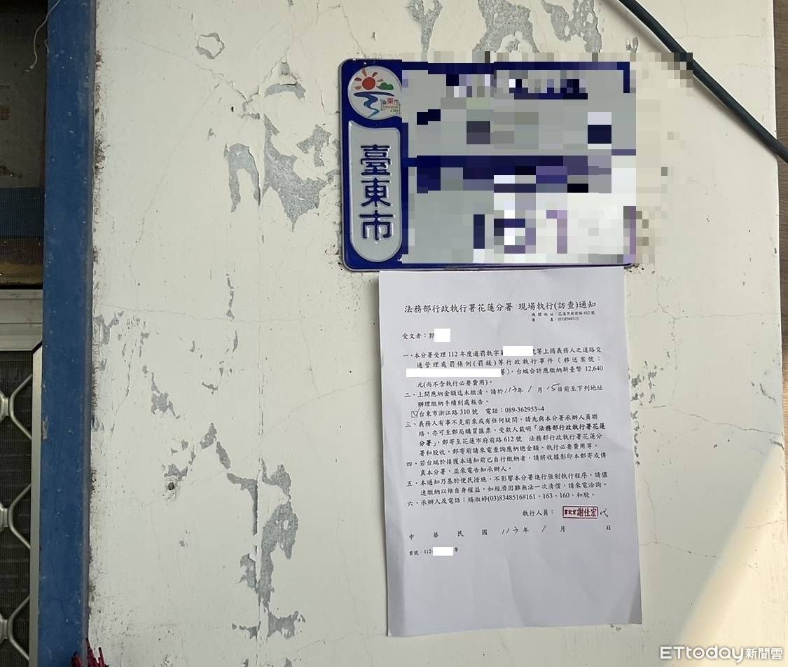 ▲書記官至郭男台東市戶籍址現場訪查,當日未會晤到郭男故留下通知書。