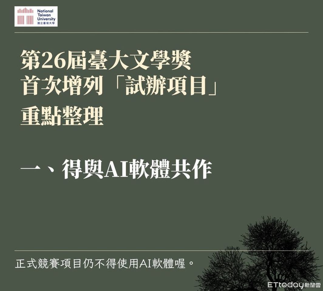▲面對AI風潮,台大文學獎首次開放使用AI軟體創作者可以參賽。(圖/台大提供)
