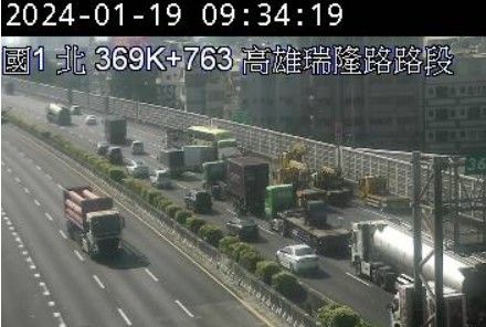 國道1號南下369.9公里處19日上午9時11分發生車禍!一台大客車、一台大貨車及2台聯結車因不明原因發生追撞,占用外側車道處理中,後方車流回堵約5公里,至於詳細事故發生原因及是否有人員傷亡,仍有待進一步調查釐清。
