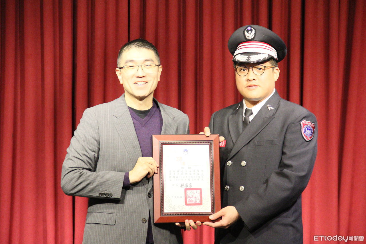 ▲基隆市長謝國樑頒發義消總隊長聘書。(圖/記者郭世賢翻攝,下同)