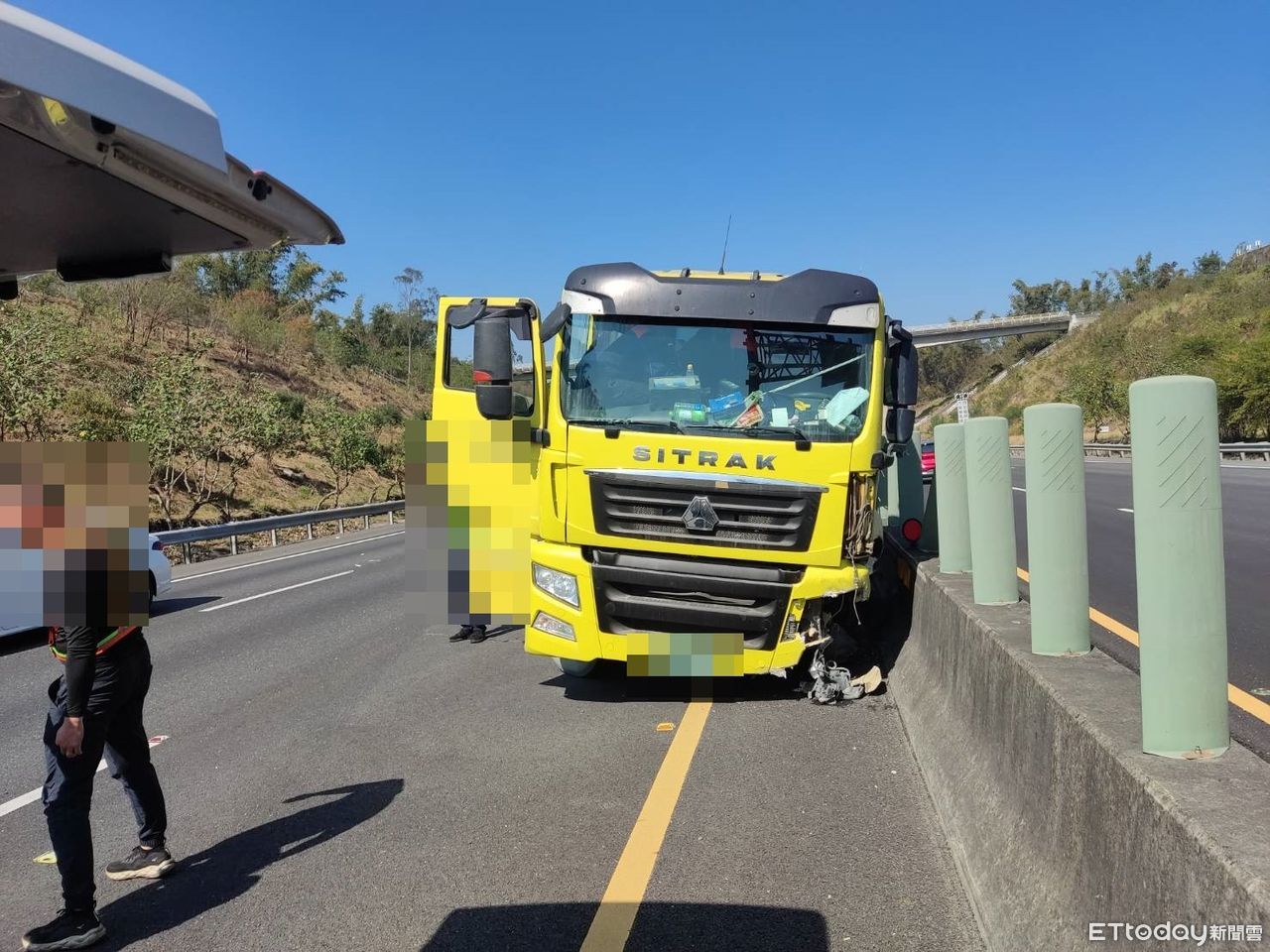 國道3號南下373公里處、燕巢系統附近,今(19)日上午11時許發生一起曳引車自撞護欄的車禍,52歲的駕駛疑似精神不濟整台車往左偏,撞上中間護欄,導致車頭毀損,駕駛的額頭也有撕裂傷,所幸意識清楚,救護人員緊急處置後送醫,至於車禍發生原因及駕駛有無酒駕,仍有待進一步調查釐清。