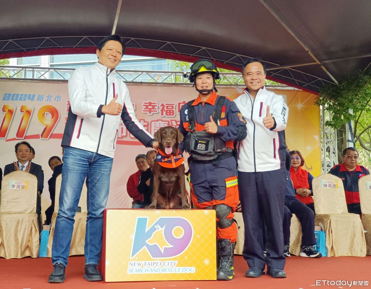 ▲▼ 新北副市長朱惕之為搜救犬Amei授階 。(下圖同/記者戴上容翻攝)