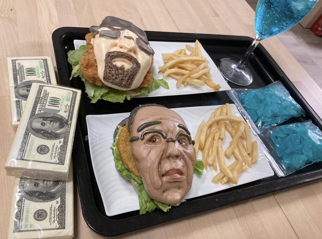 ▲邱俊彥親手製作絕命毒師「勁辣海森堡套餐」,有人臉造型的海森堡、炸雞叔叔堡,超級逼真。(圖/邱俊彥提供/Facebook:白麵書生饅不講理)