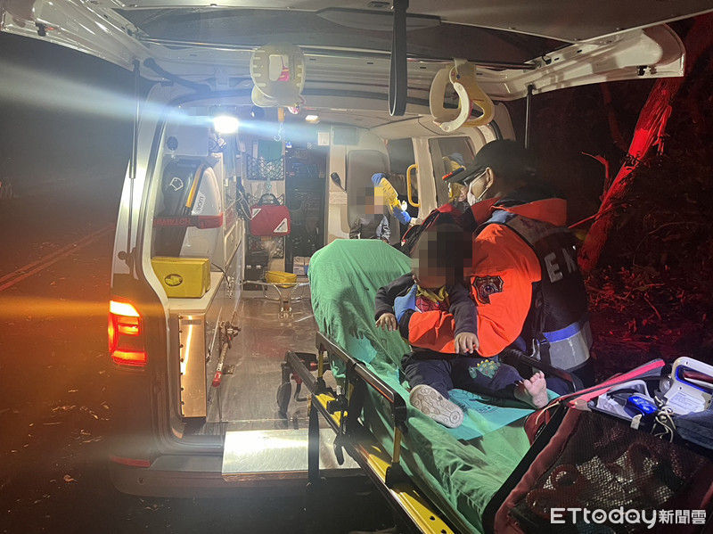 ▲台南市麻豆區20日深夜傳出一起自小客車疑自撞路樹車禍, 消防人員搶救1大2小共3人就醫。(圖/民眾提供,下同)