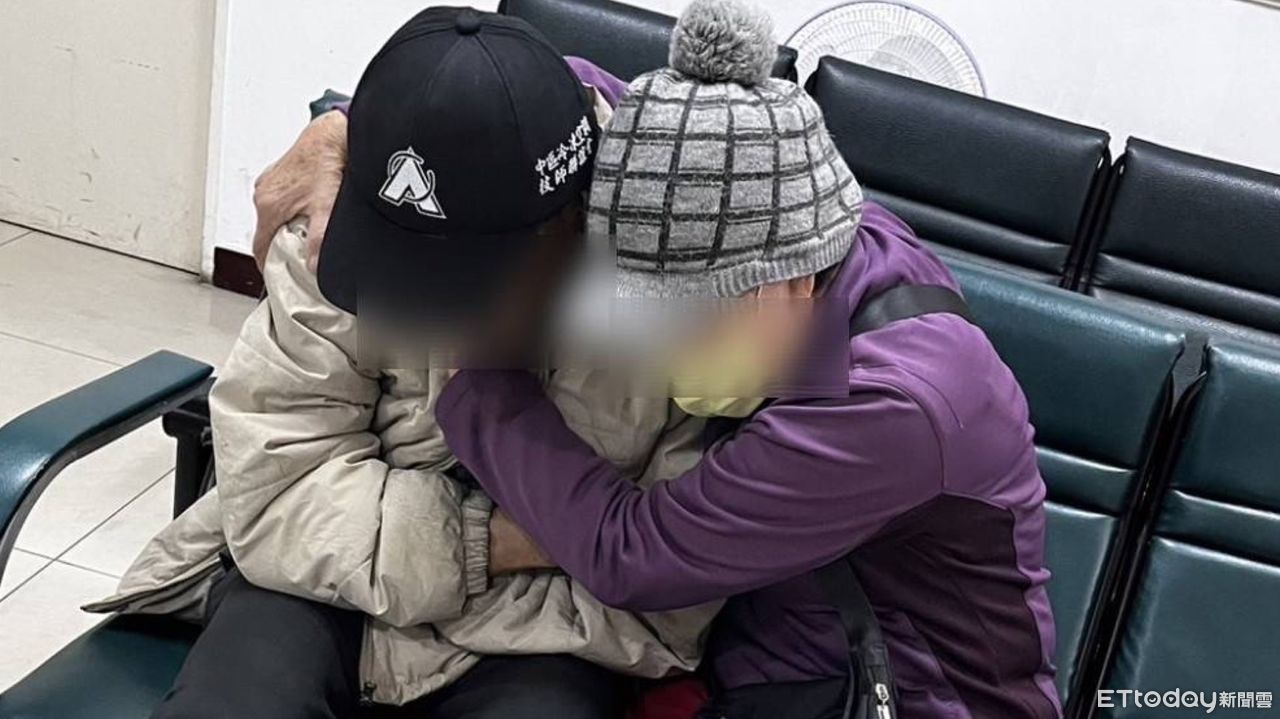▲台中一名胡男(左)跟家人吵架負氣離家,10多年後母子在派出所內團圓,激動相擁。(圖/記者許權毅翻攝)