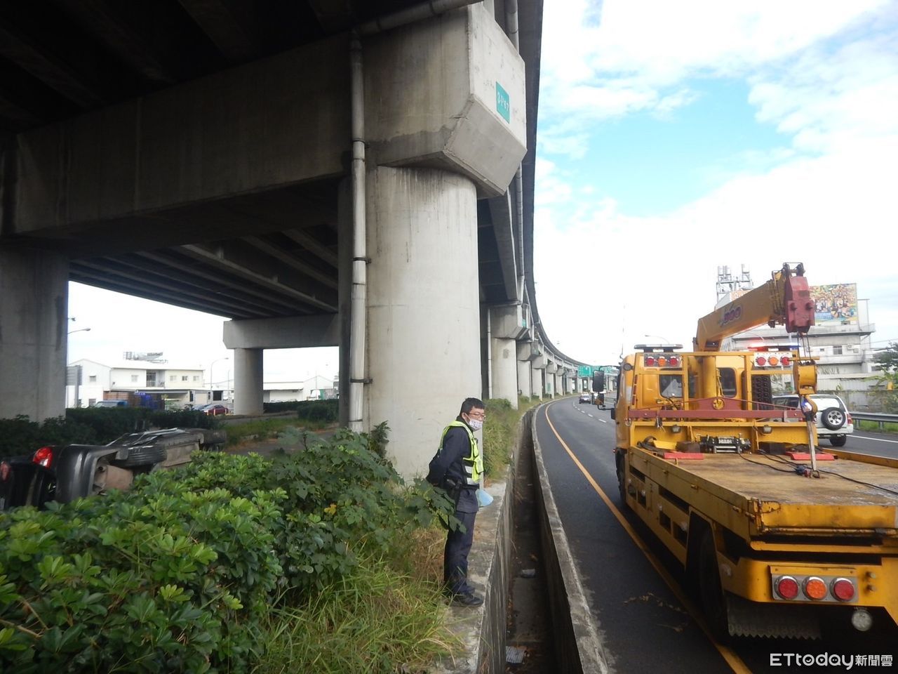 霧峰警分局證實由iPhone手機向消防通報,警方則是接獲119轉報,並有路人主動報案。經查駕駛為34歲越南籍阮男,車上搭載4名乘客,沿國道3號匝道發生自撞翻覆意外,駕駛並無酒駕,詳細肇事原因待釐清。