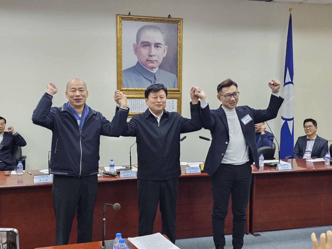 ▲傅崐萁牽起韓國瑜、江啟臣的手。(圖/翻攝自王鴻薇臉書)