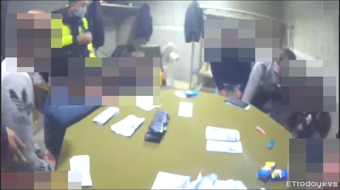 ▲警方進入工地查緝,發現14名賭客仍在桌上下注,經喝令才全部蹲下。(圖/記者陸運陞翻攝)