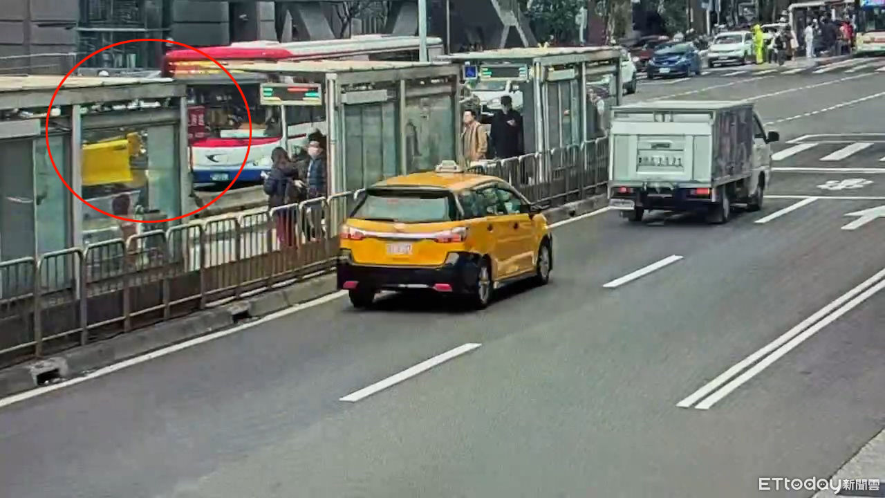 ▲計程車駕駛因未查看開車門導致後方公車煞停,公車上7人送醫。(圖說下同/記者張君豪翻攝)