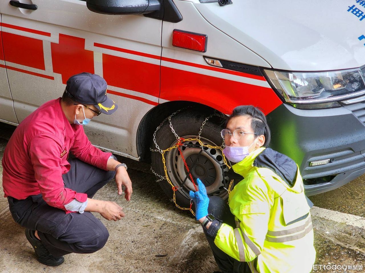 新北市政府消防局第六大隊大隊長羅億田,若寒流氣溫驟降,山區地面有積雪可能,恐危及消防救災人員駕駛安全,因此消防局特別加強熟稔雪鍊安裝方式,以確保車輛通行安全,並檢查自身車輛五油三水,以免低溫造成無法啟動的狀況。