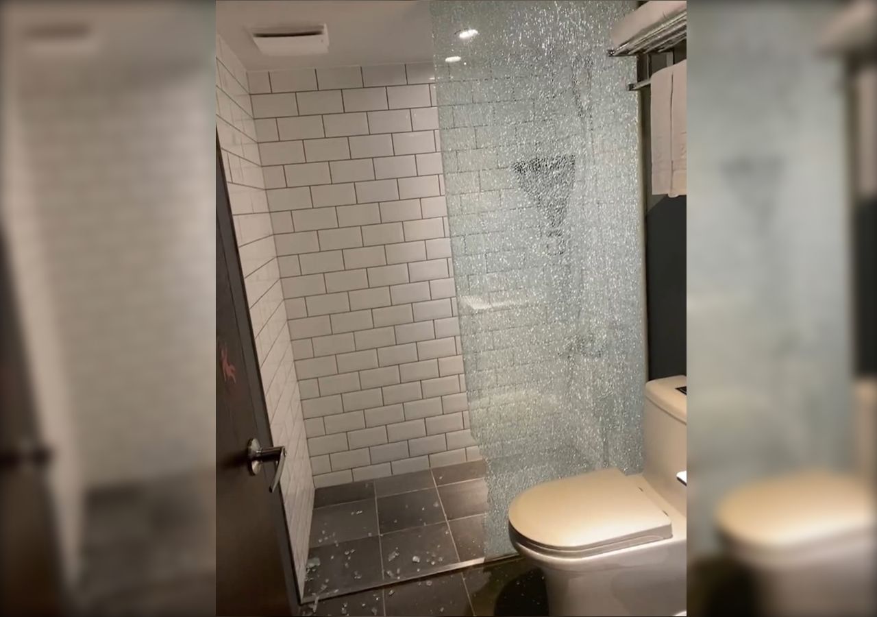 一名網友投訴,他的家人到台中旅遊,深夜入住當地某間旅館,不料剛進入房間,就發現浴室的玻璃門破裂,不料業者知情後第一時間非但不關心客人安危,後續還在凌晨狂按門鈴、要求簽切結書,甚至報警要求鑑定玻璃破裂是否有人為因素,讓他們非常傻眼,明明是旅館自己有問題,卻把客人當成犯人。