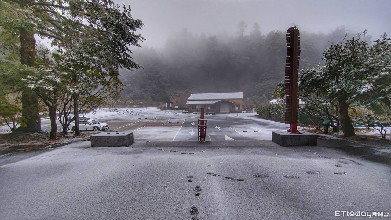 ▲台中市和平區大雪山今清晨降雪。(圖/林業署台中分署提供)