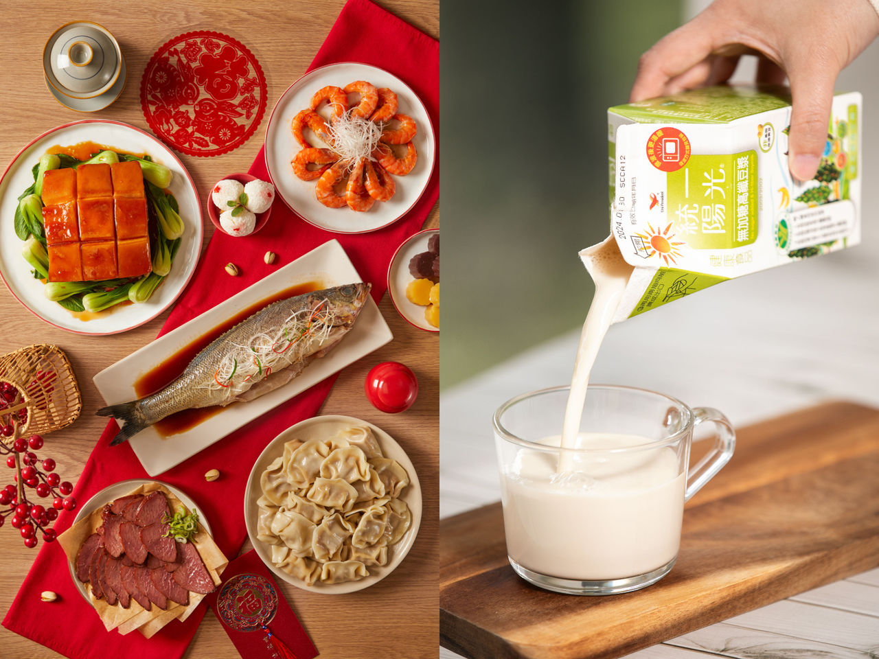 ▲春節吃不停,家醫科醫師建議低碳、高碳飲食交錯安排,搭配統一陽光高纖豆漿,就不怕身體狀態失衡。