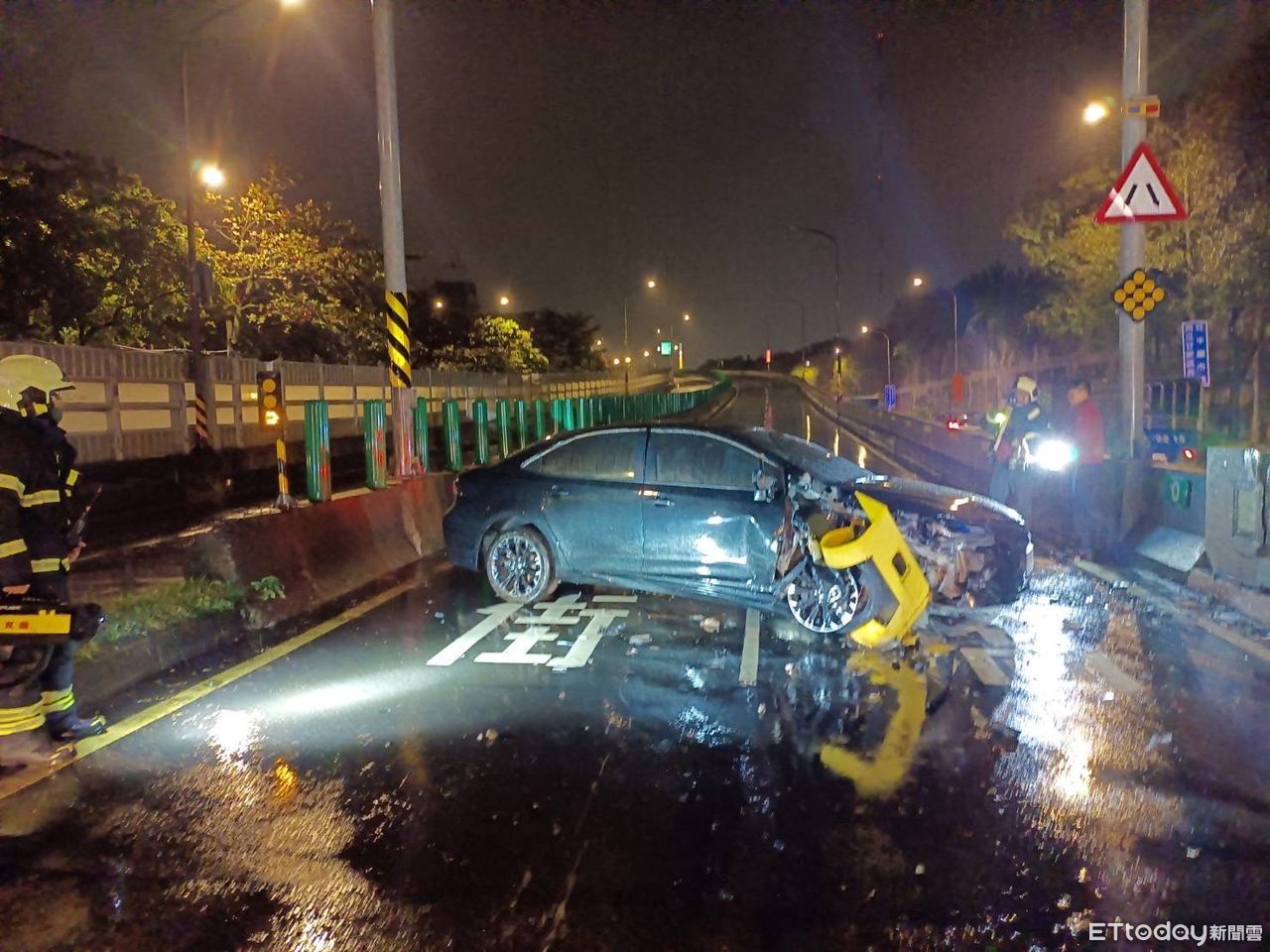 ▲王男因視線不佳自撞橋墩,後座的朋友一度沒有呼吸心跳,送醫搶命救回。(圖/記者邱中岳翻攝)