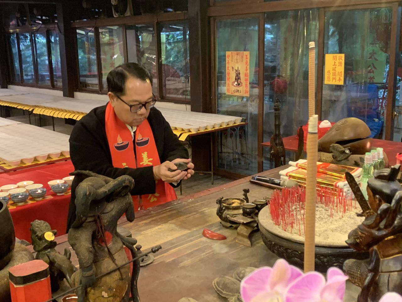 ▼陽明山姜太公道場主席羅世新請示龍年國運籤。(圖/姜太公道場提供)
