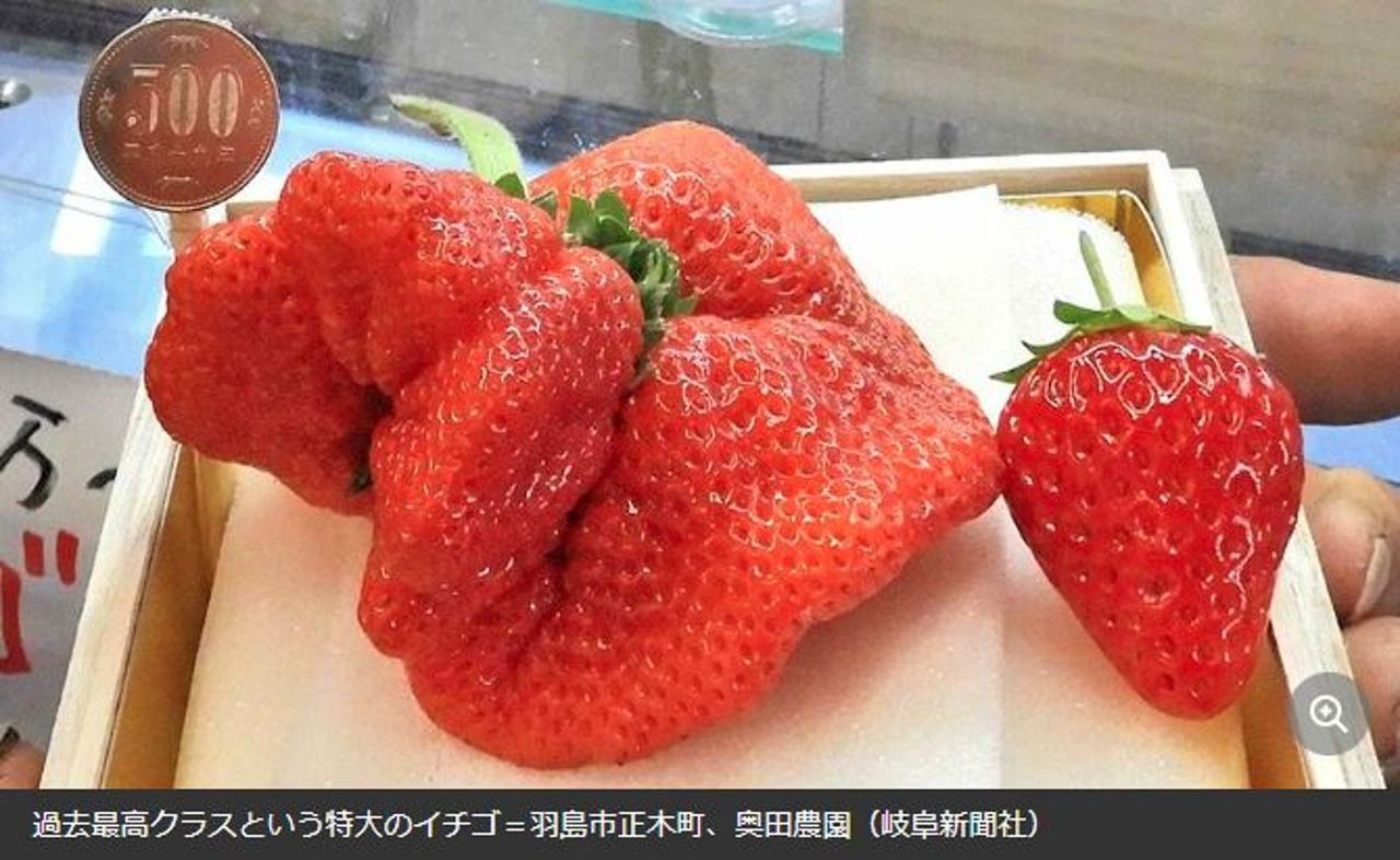 你沒看錯!這顆巨無霸草莓要價10萬日圓(約新台幣2.1萬元),位於日本岐阜縣羽島市正木町的觀光農園「奧田農園」近日收成了1顆重達165公克的特大號草莓,是農主奧田美貴夫自行開發的品種「美人姬」,價格設定在10萬起。