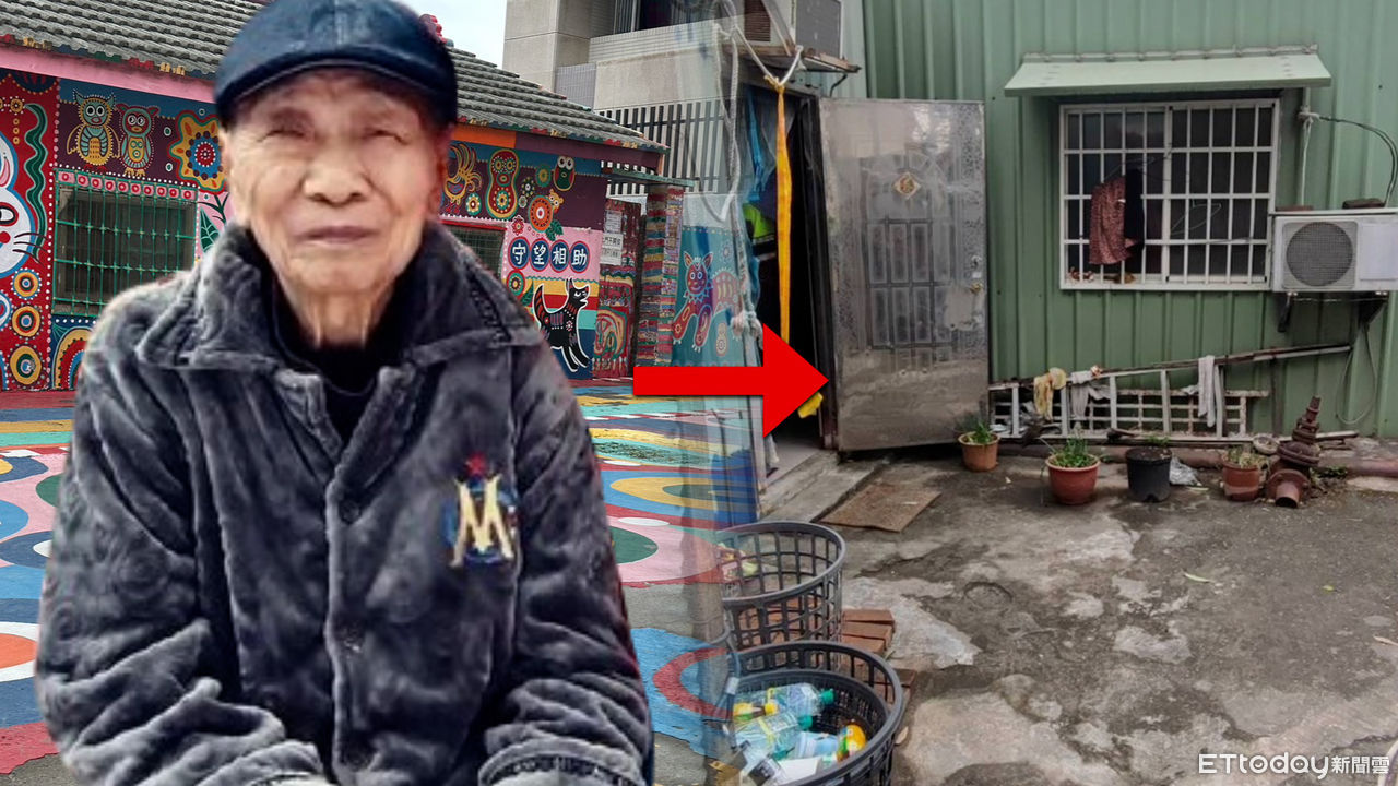 ▲彩虹爺爺黃永阜一手打造彩虹眷村,近年卻因為與經紀人、彩虹文創創辦人魏丕仁發生糾紛,搬離眷村,改在附近承租鐵皮屋度過餘生。(合成圖/ETtoday製)