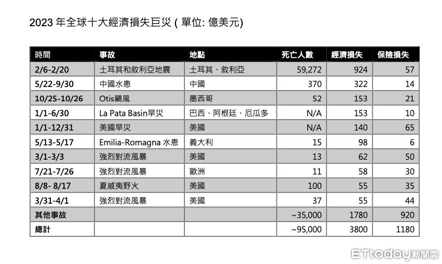 ▲2023全球十大經濟損失巨災統計。 (點圖可放大/資料來源:AON)
