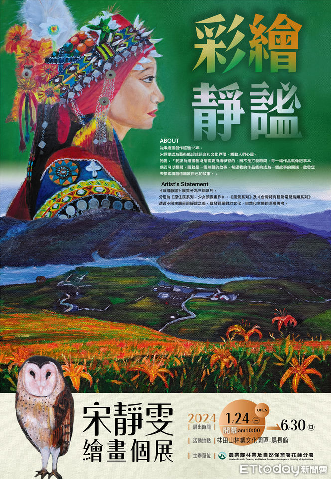 林業及自然保育署花蓮分署轄管的林田山林業文化園區,是花蓮中區藝文活動的重要展覽節點,場長館自1月24日起開幕展出宋靜雯女士「彩繪靜謐-宋靜雯繪畫個展」,92幅作品主題呈現寧靜與平和之美,探索在忙碌的生活中常被忽略遺忘的瞬間美好,提醒大家工作之餘記得停下腳步,細細品味周遭的寧靜之美。展期至6月30日止,邀請前來共襄盛舉。