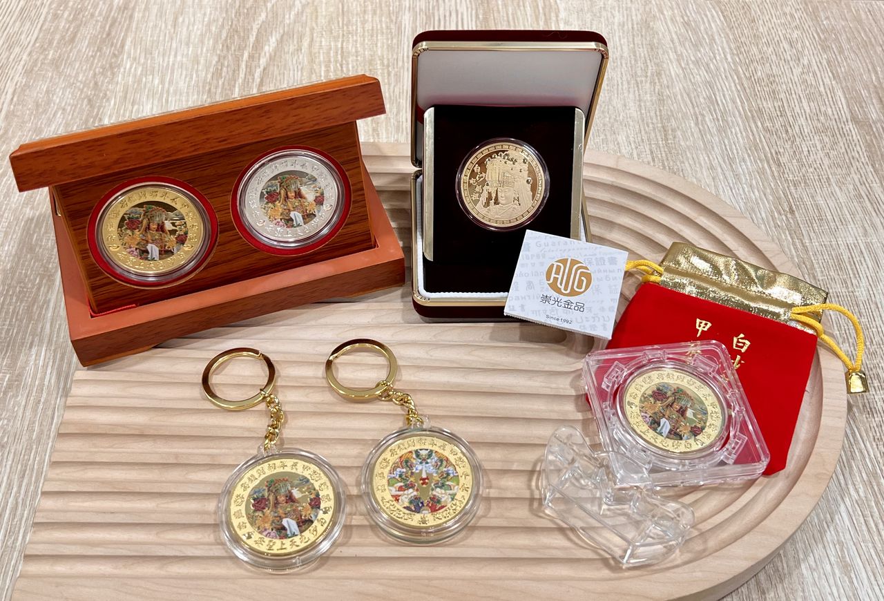 ▲7-11預購即日起獨家推出限量媽祖周邊,錢母系列商品有「白沙屯媽祖錢母金幣一台兩」、「白沙屯媽祖金銀雙收招財錢母」、「白沙屯媽祖錢母鑰匙圈」以及「白沙屯媽祖時來運轉龍年錢母」。(圖/7-11提供,下同)